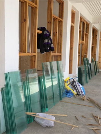 Aménagement de la toiture en tôles : les toitures traditionnelles conçues pour un climat semi-désertique sec et froid ne résistent pas au changement climatique qui amène des pluies plus fortes et plus fréquentes, et provoque des ruissellements d'eau dans les salles.